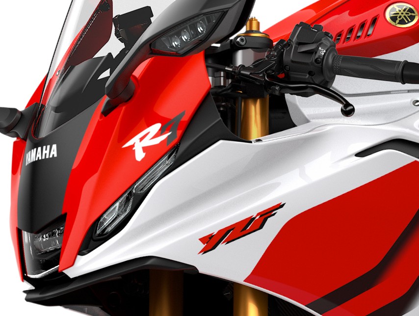今回の新色では、ヤマハレーシングイメージを象徴するブルーを基調に、サイドロゴ下部にシアンのラインを配し、スポーティな造形美を際立たせている。また、創立70周年を記念した200台限定の「70th Anniversary Edition」も同年1月30日より登場する。この記念モデルは、1964年のチャンピオンマシン「RD56」をモチーフにした白地×赤ラインの特別カラーを採用しているのが特徴だ。