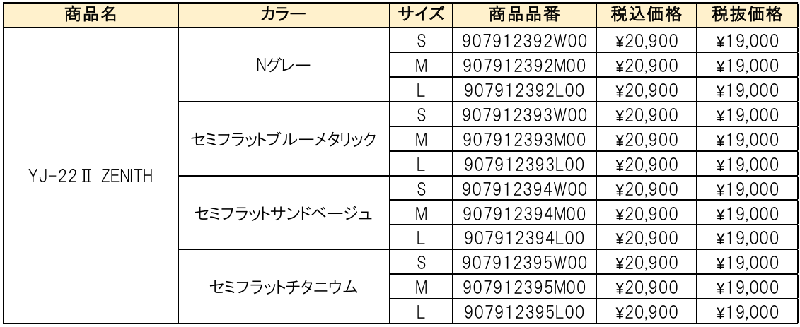 「YJ-22Ⅱ ZENITH 新カラー4色」 新発売