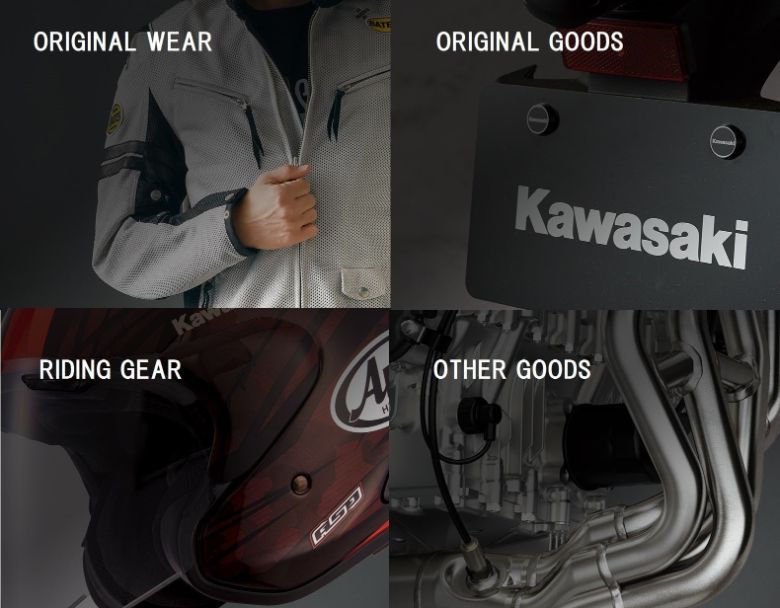 カワサキオンラインショップでは、カワサキ(日本国内)で取扱いのあるモーターサイクルやジェットスキーの補修部品をはじめ、モーターサイクルライフに必要なライディングギアや、あるだけで楽しめるグッズ等、カワサキ独自視点で製作されたオリジナルアイテムを販売している。