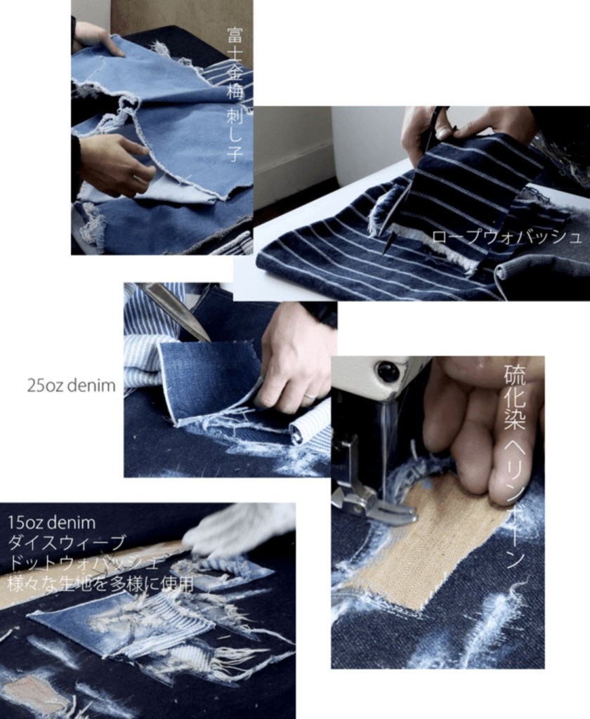 14ozストレッチデニムと11種のパッチワークで完成されたダウトデニムはまさに、十二単衣。