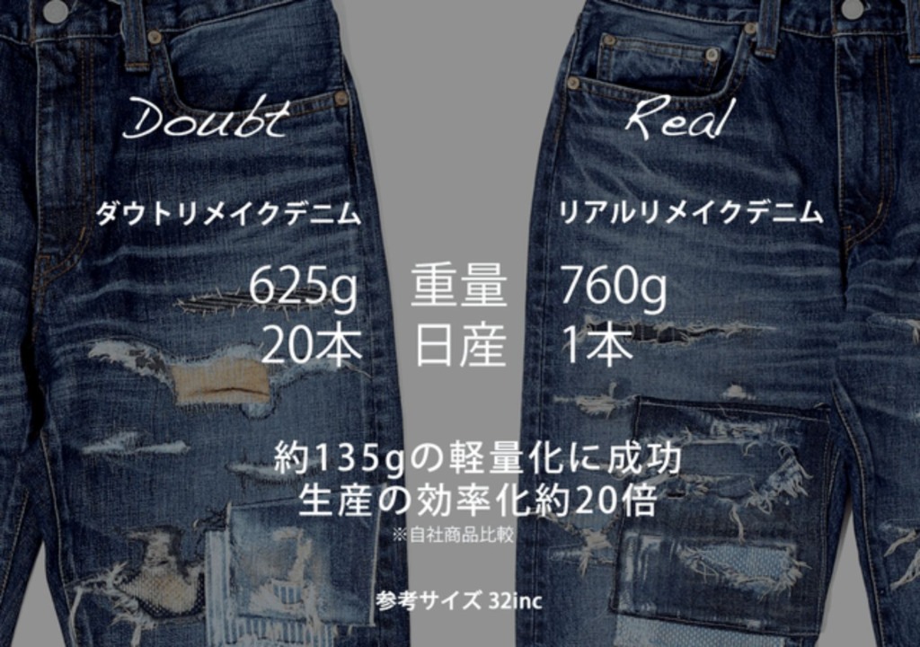 ダウトリメイク加工は「高価で希少なリメイクデニム」の価値観を「皆が楽しめるリメイクデニム」へ革新させる技術だ。