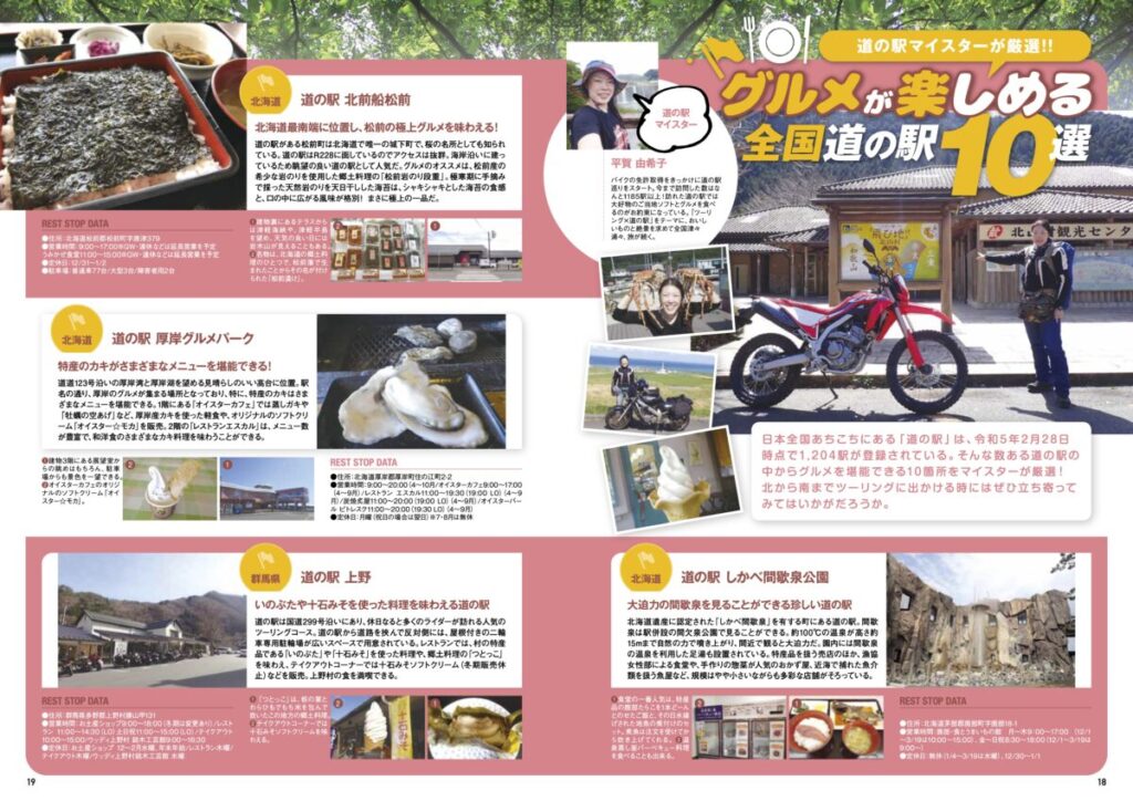 第二特集ではツーリングの時に休憩ポイントとして外せない『道の駅』を大特集。今回は“食”をテーマに紹介しています。
