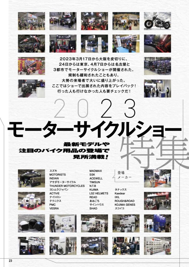 5月15日に発行するVol.12では、『モーターサイクルショー』を特集。車両メーカー、ライディンギア、パーツなど、気になる最新情報を紹介!