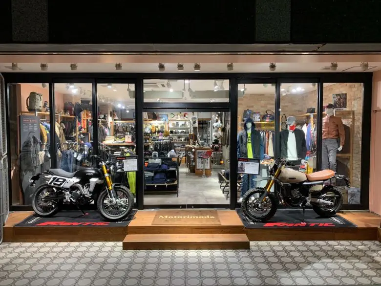 ヨーロッパをはじめ、国内外のハイセンスなモーターアパレル・アイテムを多数取り扱うモトーリモーダ銀座店に、イタリアのバイクメーカー「ファンティック」のキャバレロ・シリーズが、2022年2月28日(月)までの期間限定で展示される。