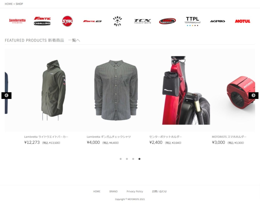 この度、モータリスト合同会社はオフィシャルサイトにて、オンラインショップ(https://motorists.jp/shop/)を開設した。
