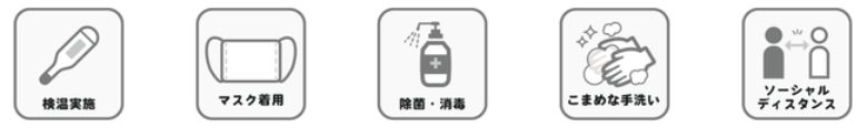 お客様および当社スタッフや地域の皆様に対して、国や自治体・各業界の対策ガイドラインの元、当面の間、感染症予防のために以下の基本対策を徹底し、安心してご利用いただけるよう取り組んでいく。