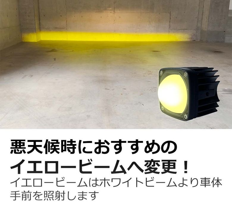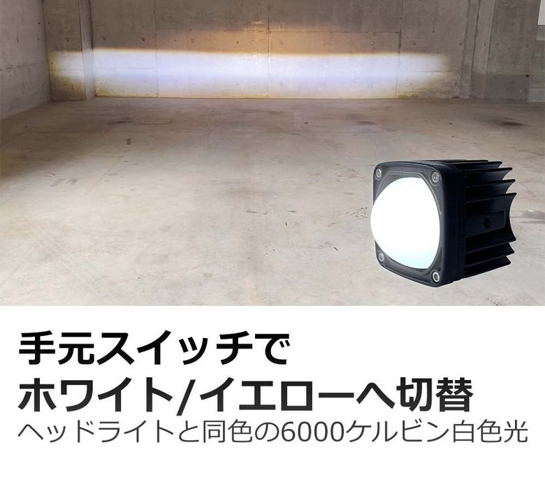 手元のスイッチ操作によってホワイト/イエローの切り替え照射が可能で、天候状況によってクイックに使い分ける事が出来る。
