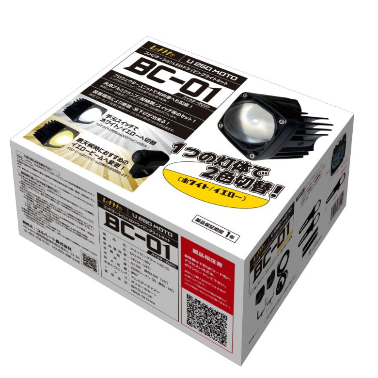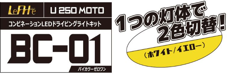 BC-01は、1つの灯体からホワイト・イエロー2色のランプカラーを切り替え照射できる優れもので、手元のスイッチ操作によって切り替えが可能。天候状況また路面状態に合わせてクイックな使い分けができる。