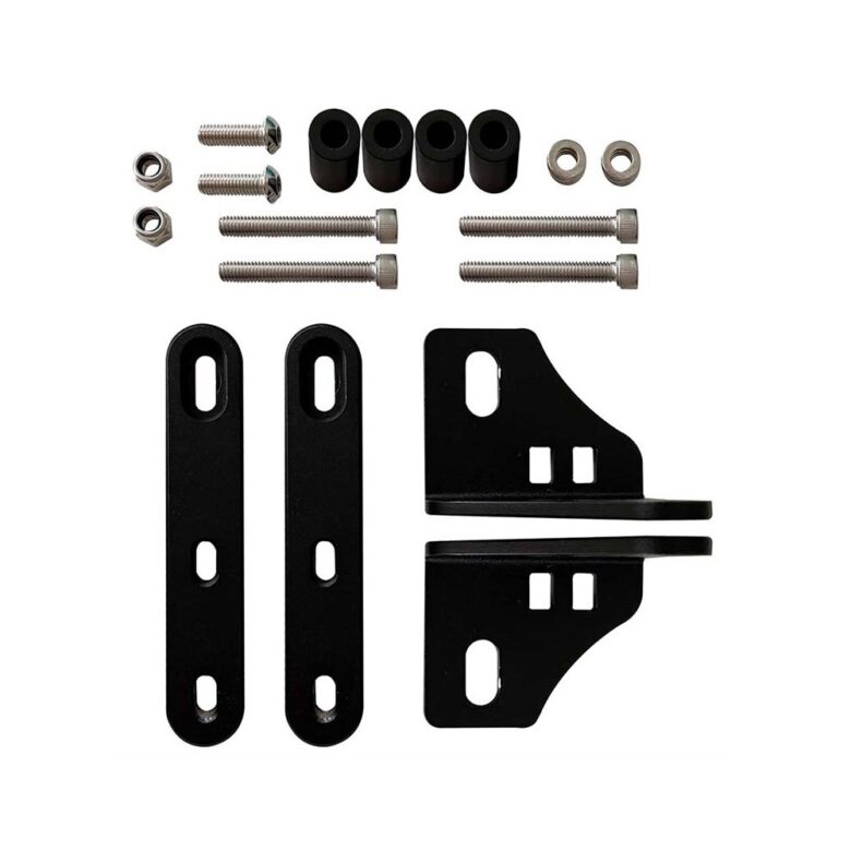 L型ステーは、アルミ製2ピース構造で取付場所により、上下の変更や取付穴の拡大等の加工が比較的しやすく板厚を厚めに設定している為、頑丈だ。