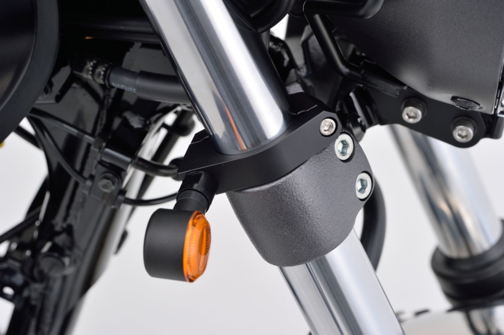 発表されたのは、よりスポーティな前傾姿勢となる「LOWスタイルハンドル」、車検対応の「LEDウインカーKIT」の2種類。どちらも車種専用設計で、ボルトオンでの取り付けが可能だ。ウインカーKITはノーマルテール用と、すでに発売となっている同社製ステンレスリアフェンダー(品番:21800)用とで、パッケージ内容が異なるため要注意。