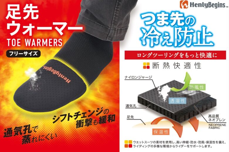 ヘンリービギンズから発売される「HBV-031 足先ウォーマー」は、そんなバイクをウィンタースポーツと捉えるライダーにとって、定番商品になりえる可能性を秘めている。
