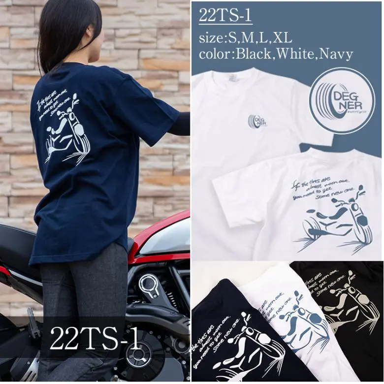 ライダーズブランド「デグナー」から、2022年の新作オリジナルTシャツが3種類登場した。