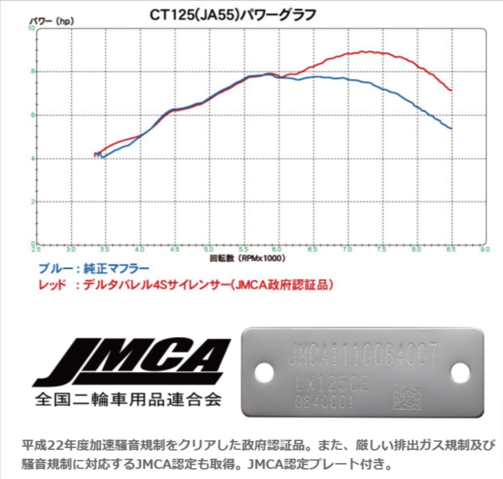 厳しい排出ガス規制及び騒音規制に対応しつつ、多段膨張型エキパイによって低回転域ではノーマルと同等、中~高回転域ではノーマルを大幅に上回る優れたパワー特性を発揮する。
