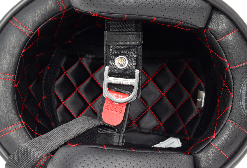 ヴィンテージ感のあるキルティング加工を施した内装はクッション性が高く、長時間のライディングでも快適さを維持します。