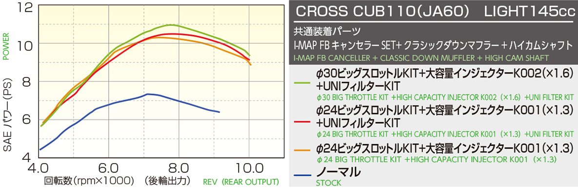 株式会社キタコは、スーパーカブ110(JA59)・クロスカブ110(JA60)用145cc/124cc LIGHT ボアアップKITを発売した。