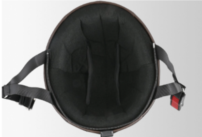 走行風によるヘルメット浮き上がり現象を抑えるV字バンドを採用。