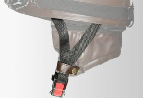 あご紐にはリリースボタンひとつで簡単にヘルメットを着脱できるワンタッチバックルを採用。ヘルメットホルダー固定用のDリングを装備。