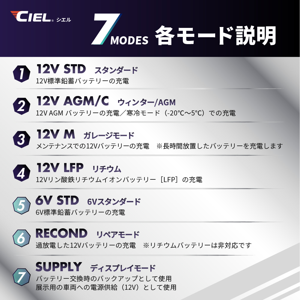 [リチウムバッテリー対応、7つのモードであらゆるバッテリーを充電]