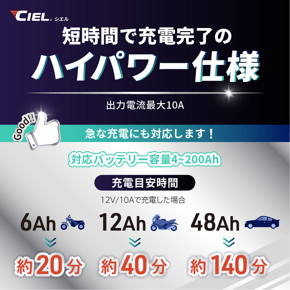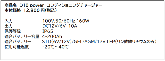 株式会社 LINKSは、バイクから自動車まで対応したCIEL ブランドのコンディショニングチャージャーシリーズに「D10 power」を追加し発売した。