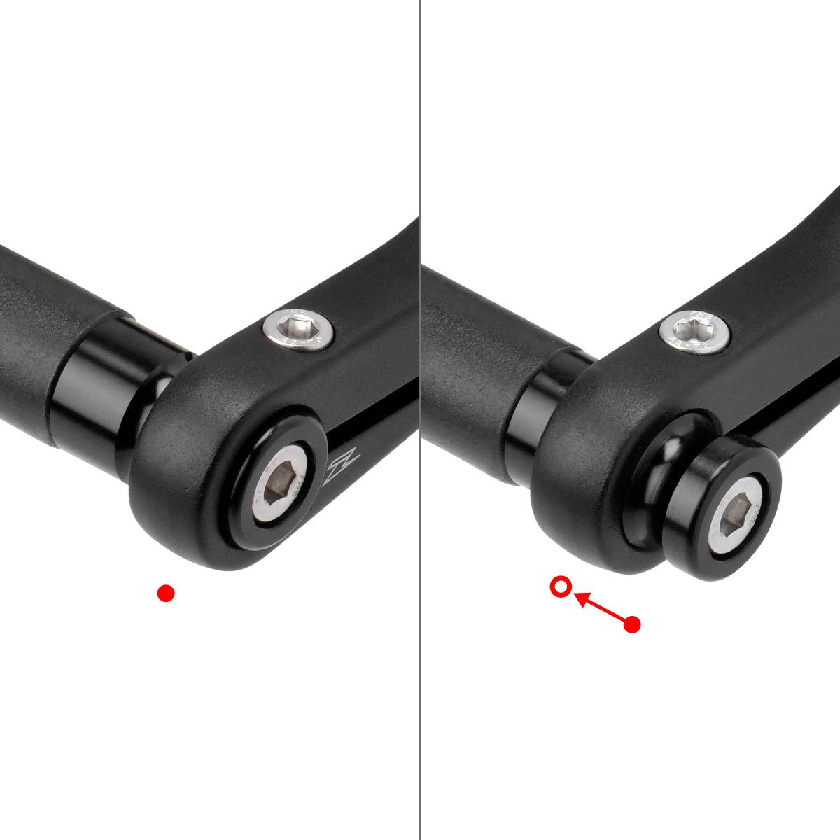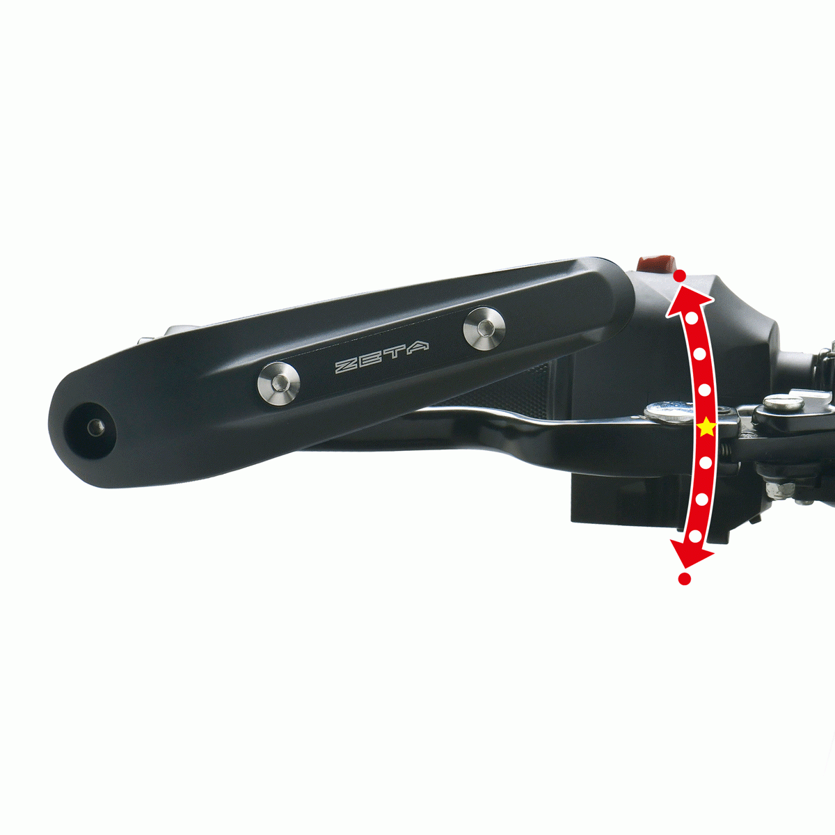 アームボルトを緩めることで、バーエンドを軸に上下無段階の角度調節が可能。プロテクターの高さを好みの位置に調整可能。