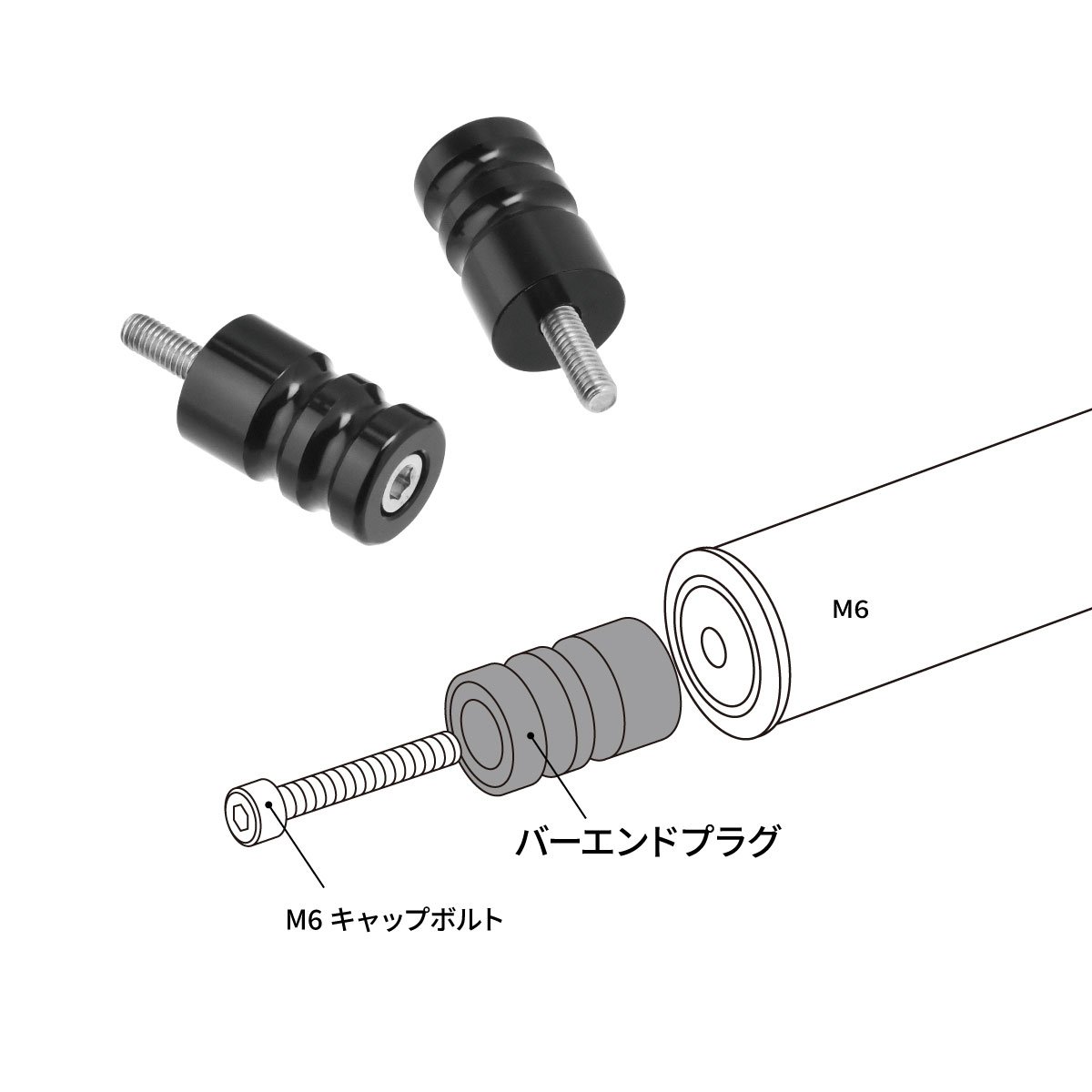 バーエンドプラグの溝により、車両に合わせてアームの位置を2段階に調節可能。本体の脱落を防止し、さらに転倒によるスロットルチューブの破損を防ぐストッパーとしても機能する。