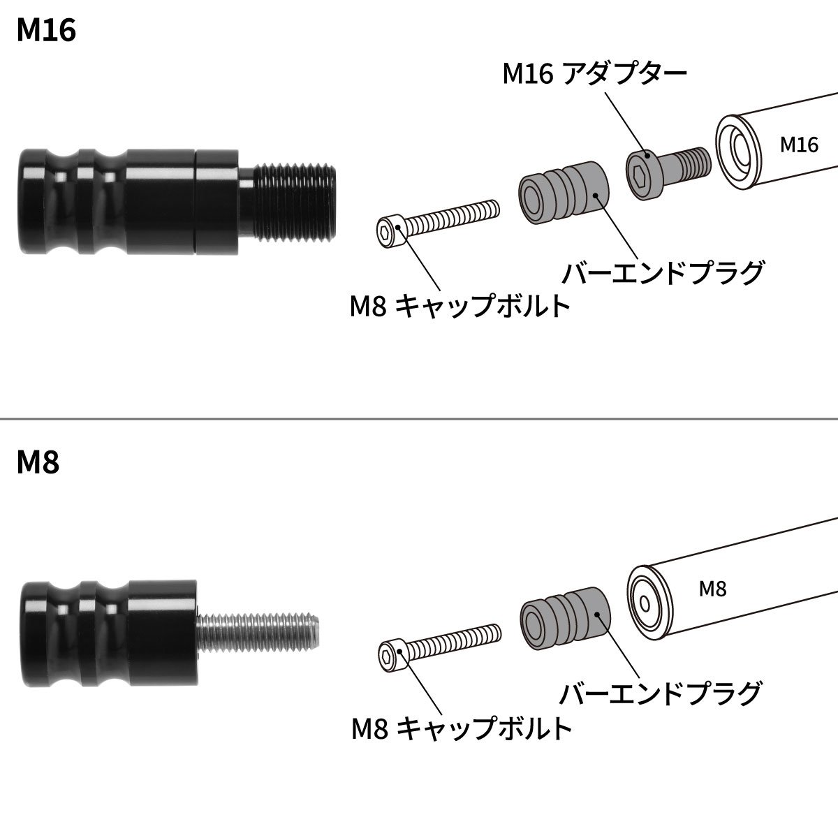 YAMAHA車:ハンドルバーエンドがM16 ピッチ1.5mmの加工がされているハンドルバーに取付け可能。