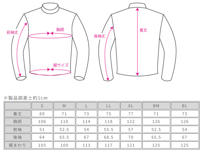 SIZE: S、M、L、LL、XL、BM、BL