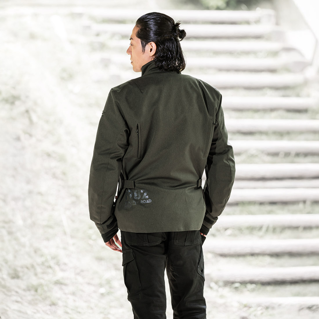 3種類のポケットが出現するライディングフェイスは、ミリタリーフェイスとは打って変わり実用性と通気性にシフトするラフアンドロードならではの機能を豊富に揃えました。ポケットはもちろん、グラスホルダーやオリジナル機能のフロントVベントを備え、腕・背中のファスナーベンチレーションと併用することで日中は気温が上がる日も快適に走り続けられます。