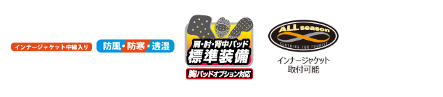 PROTECTOR: 肩・肘・背中パッド 標準装備 (胸パッドはオプション)
