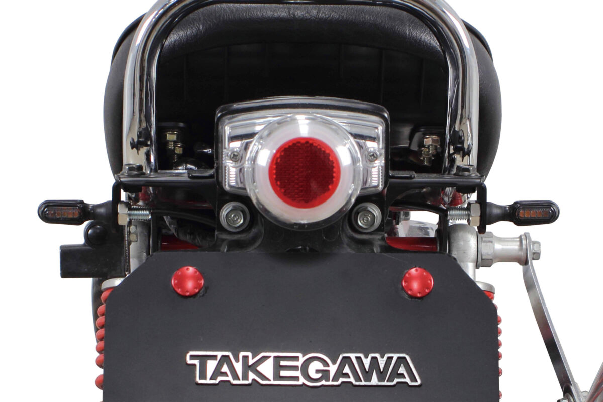ウインカーレンズは精悍な雰囲気のスモークレンズを採用。ウインカーボディーには、SP武川ロゴのレーザーマーキング入り。