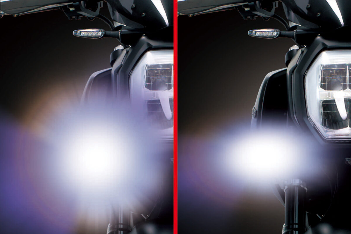 高輝度LEDフォグランプの採用により、夜間での車両の存在感を高め、他のライダーや車からの認識がしやすくなり、事故防止対策としても貢献します。