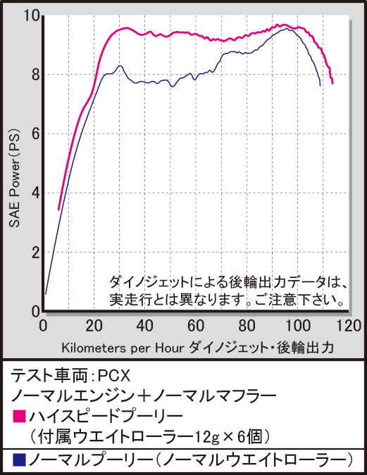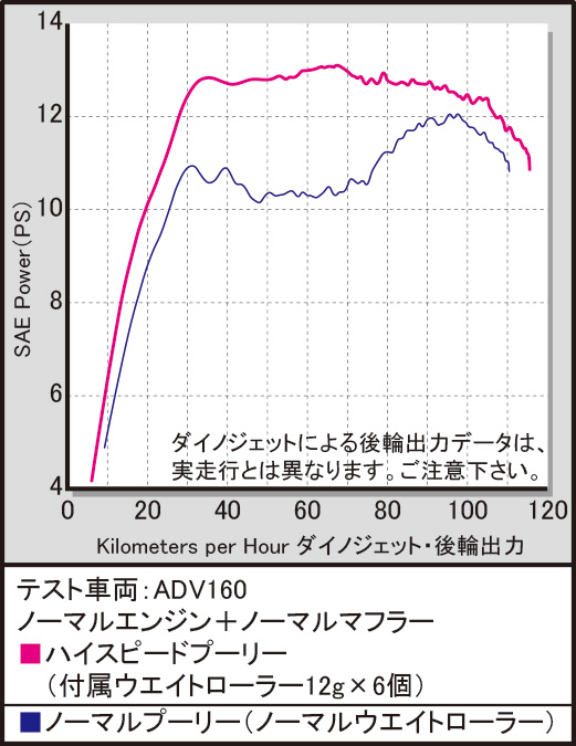 本製品を純正プーリーと交換することで、加速性能の向上と最高速アップが可能になります。