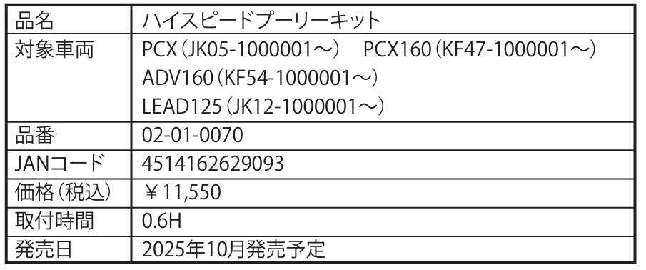 株式会社スペシャルパーツ武川は、PCX、PCX160、ADV160、LEAD125といったホンダの人気スクーター向けに、「ハイスピードプーリーキット」を新発売した。
