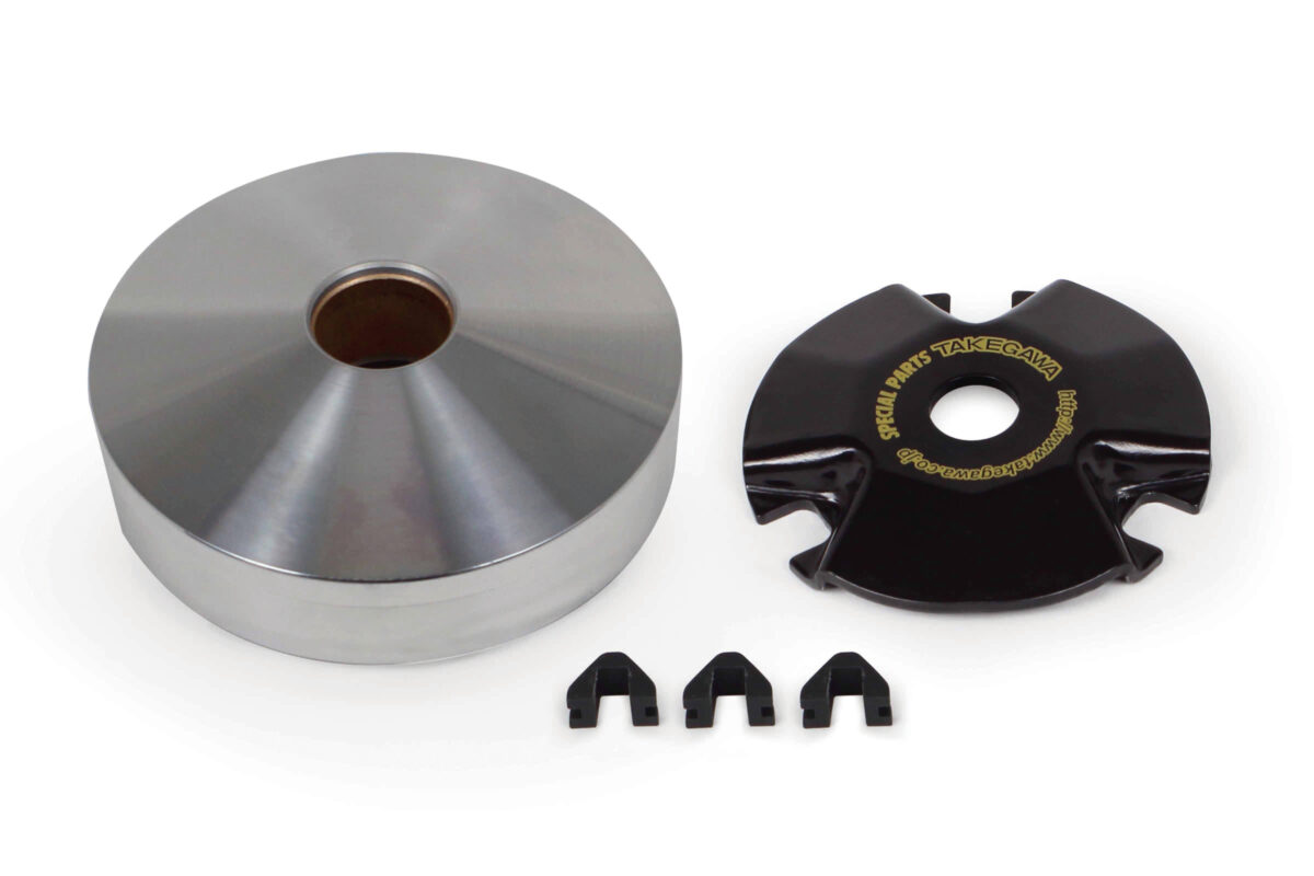 同製品は、純正プーリーと交換することで加速性能の向上と最高速アップを図るアイテムで、テスト開発に基づくオリジナル形状のローラーガイドやランププレートなどを採用する。レッツ4やアドレスV50などスズキ車向け(品番02-01-7030)は、専用ウエイトローラーが付属する。一方、TodayやDioなどホンダ車向け(品番02-01-7029)は、ウエイトローラーは別途用意が必要となる。