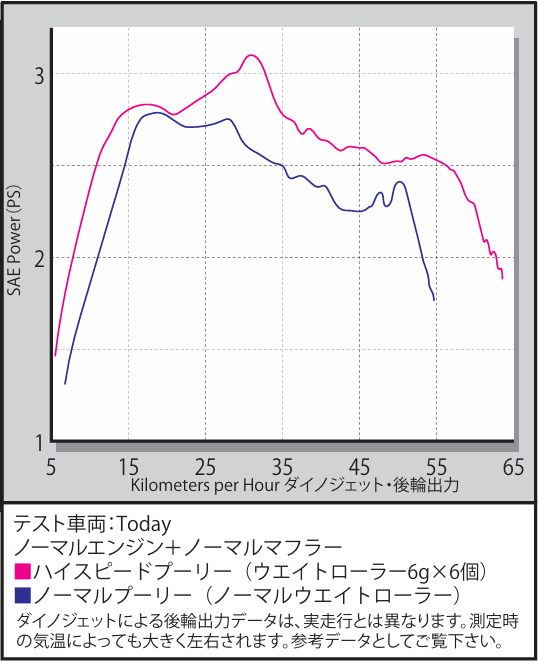 本製品を純正プーリーと交換することで、加速性能の向上と最高速アップが可能になります。