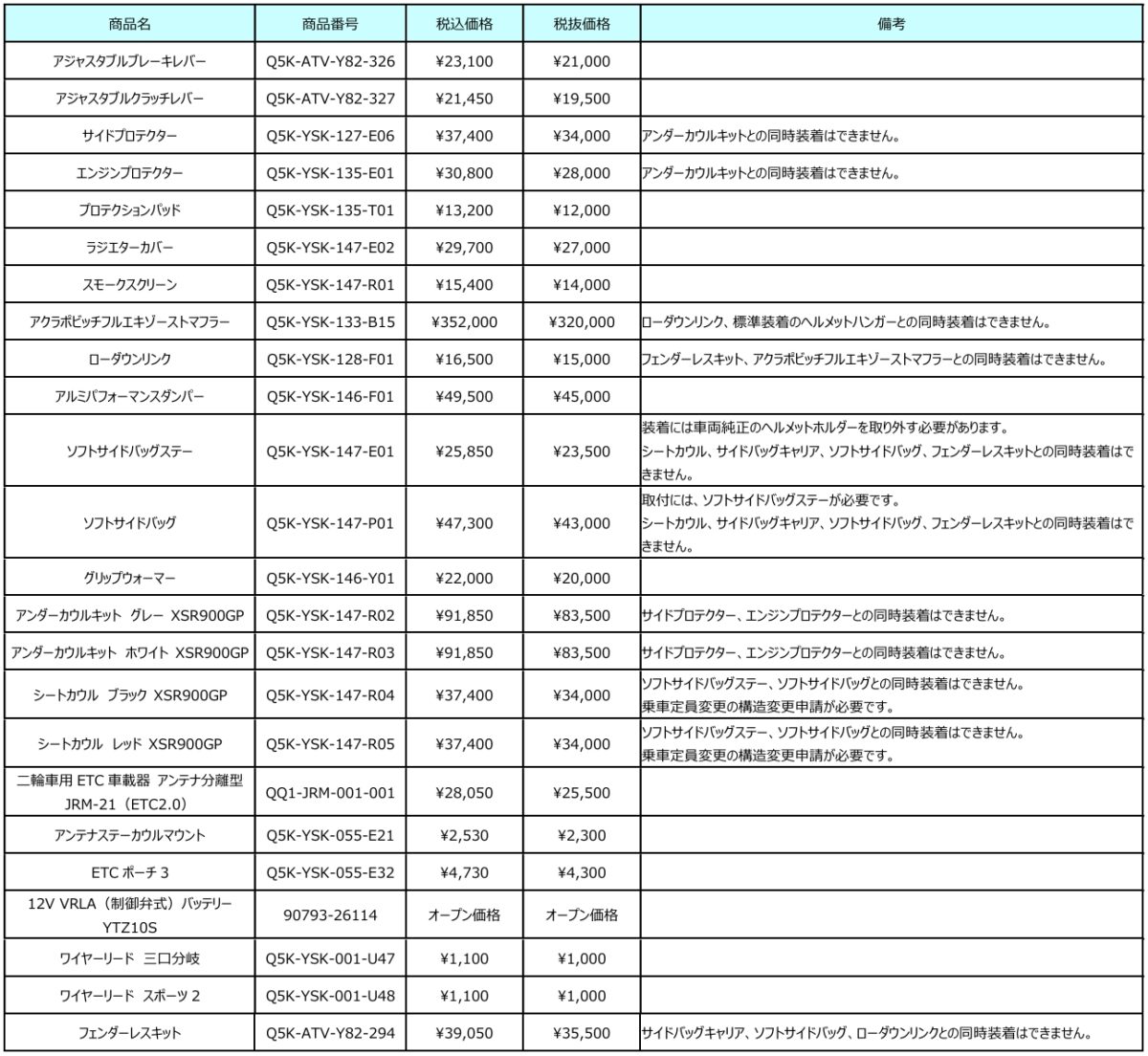 XSR900GP 新規設定アクセサリー及び、適合アクセサリーのご案内
