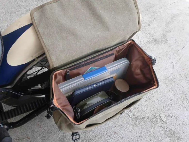 サイドバッグは、路面からの巻き上げダストによりどうしても汚れてしまうものだが、そんな汚れさえも風合いの一つとして、つい使い込むことに楽しみを感じるバッグとなっている。