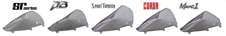 スクリーンタイプは「SR」「ダブルバブル」「スポーツツーリング」「コルサ」「MARC1」の5タイプで、スクリーンカラーはクリア、スモーク、ダークスモークをラインナップ。シチュエーションやルックスから最適なスクリーンを選ぼう。