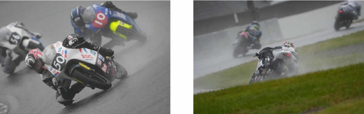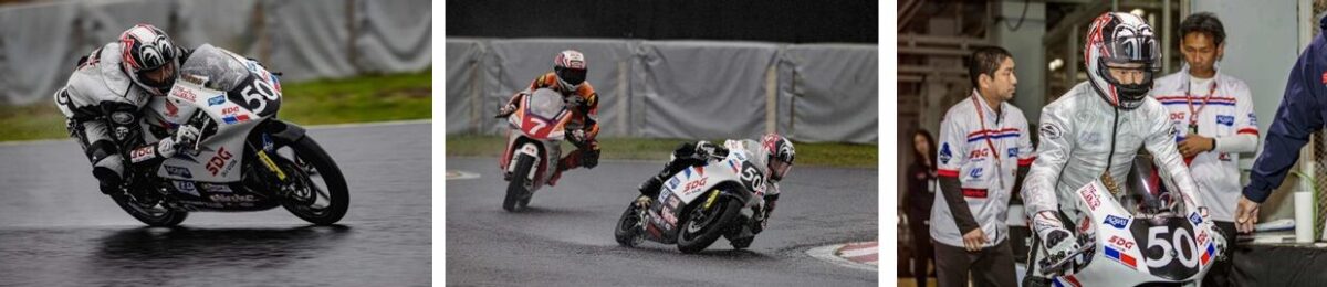 朝のウォームアップは、昨日からさらにセットを変えていたのでその確認をしました。コンディションに合わせて少しアジャストしたのですが、それが合っているのかどうかはまだ分からないままセッションを終えました。決勝に向けてさらに少しセットを調整しましたが、自分の走りとしては最後までうまくつかみきれずに終わった感じです。ウォームアップでトップに立ったのは、挑戦する姿勢というか、戦う気持ちを作るためでした。スタートは悪くなかったのですが、プッシュを続けても自分のペースが上がらず、必死に走ってもどんどん抜かれていき、「みんな、どうしてそんなに速いんだ?」と考えながら走っていました。最後にペースが上がった理由も自分では分かりません。ずっとプッシュしていたので、何か特別な変化があったわけでもありませんでした。これが最終戦ということで、完走したい気持ちが強く、転倒を恐れてしまった部分もあったかもしれません。結果的に、西日本のレースはすべて雨になってしまい、自分の弱点が出てしまったと思います。ミニバイクコースでの練習では雨でもうまく走れるのですが、フルコースになるとなぜかうまくいきません。そのあたりの克服が今後の課題です。来年は「全レースが雨になるかもしれない」というくらいの危機感を持って、シーズンオフの練習に取り組みたいと思います。