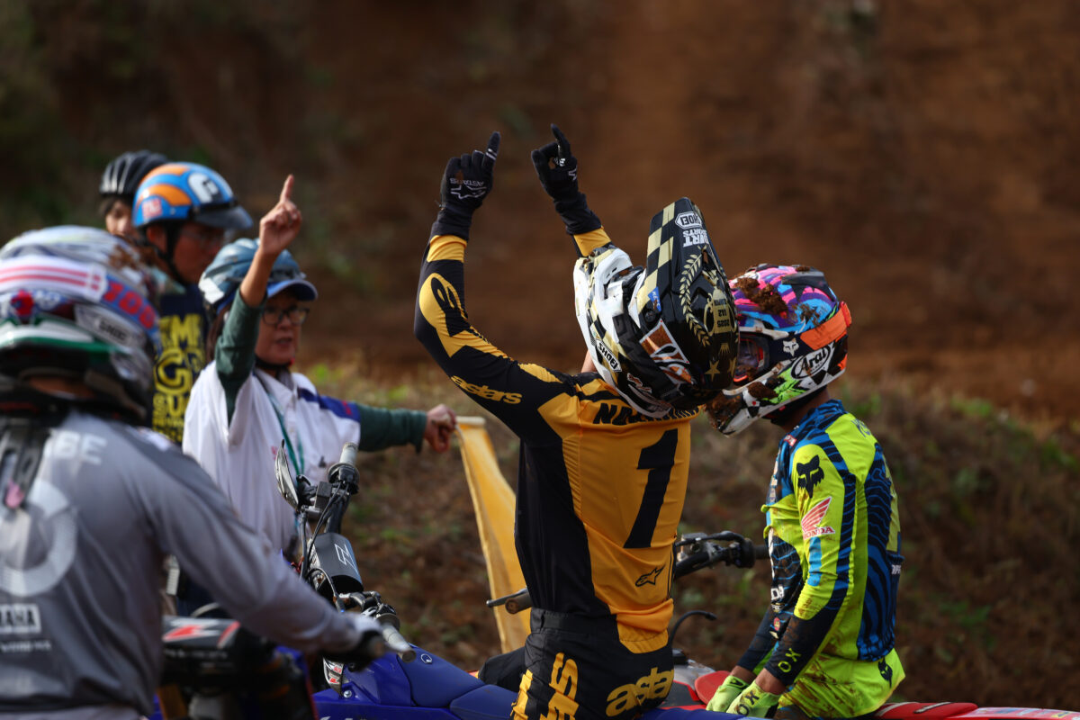 開幕戦は世界選手権への参戦経験もある実力者、ブライアン・シュー選手(ガスガス)と渡り合い、両ヒートで2位と連覇に向け確実な一歩を踏み出しました。第2戦スポーツランドSUGOでは両ヒートを制して総合優勝を獲得すると、オフロードヴィレッジ(埼玉)、世羅グリーンパーク弘楽園(広島)と、3大会連続で総合優勝を果たし、同じく「YZ250F」を駆るランキング2位の田中淳也選手に27ポイント差でサマーブレイクを迎えました。