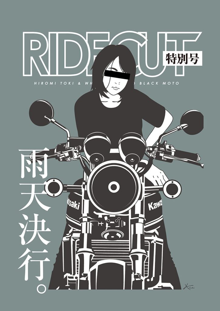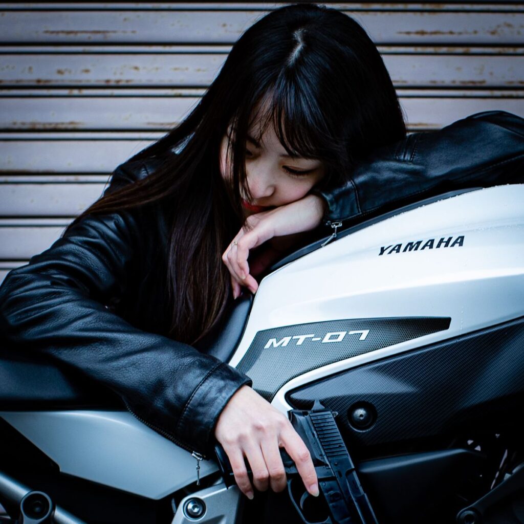 Ninja250R、GSX-R750、モンキー、MT-07、Multistrada1000DSなどその他、7台のモーターサイクルを所有、歴史建造物や寺社仏閣を巡るツーリングライダーとして走り回ったりと日本を代表するバイカーモデル。昨年(2021年)には第一子出産となる中、”白黒”と隔月でコラボTシャツをリリースする(全6回)など、見た目とは裏腹に非常にパワフルな一面も持ち合わせる。