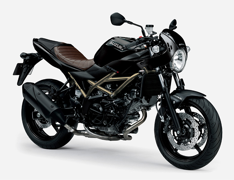 「SV650X ABS」は、スムーズな出力特性や高い操縦性を特長とする、645cm3 V型2気筒(Vツイン)エンジンを搭載したスリムで軽量なロードスポーツバイク「SV650 ABS」をベースに、カフェレーサースタイルの個性的な外観に仕上げた。ヘッドライトカウルやセパレートハンドル、タックロールシートを装備したスポーツカスタムの要素を取り入れ、カフェレーサースタイルの雰囲気を盛り上げるレトロな印象のデザインとした。さらに、ヘッドライトの下にはオプションでフォグランプを装着可能とした。