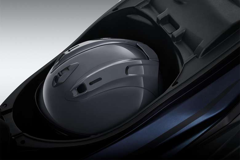 フルフェイスヘルメットを収納しても余裕のあるラゲッジスペース。グローブやレインウエアなどの装備品も一緒に収納できる。
