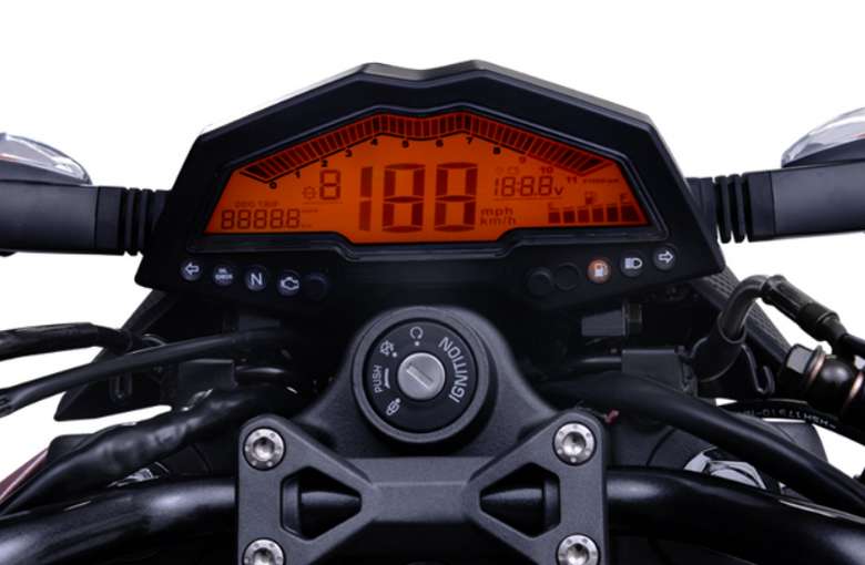 走行時に必要な情報が一目でわかりやすいLCDマルチメーターを採用。ハンドル周りがコンパクトにまとまっているのですっきりして見える。