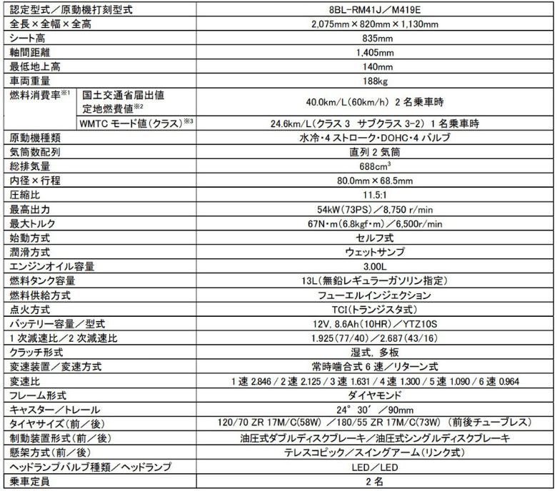 カラーグラフィックには、往年のヤマハスポーツモデルを彷彿とさせる、ホワイトとブラック2色が設定され、価格は93万5000円(税込み)だ。