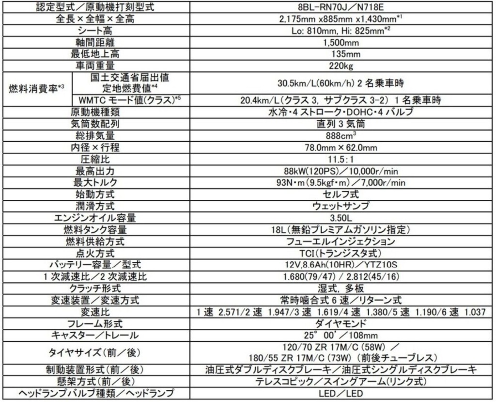 ※5:WMTCモード値は、発進、加速、停止などを含んだ国際基準となっている走行モードで測定された排出ガス試験結果にもとづいた計算値となる。走行モードのクラスは排気量と最高速度によって分類される。