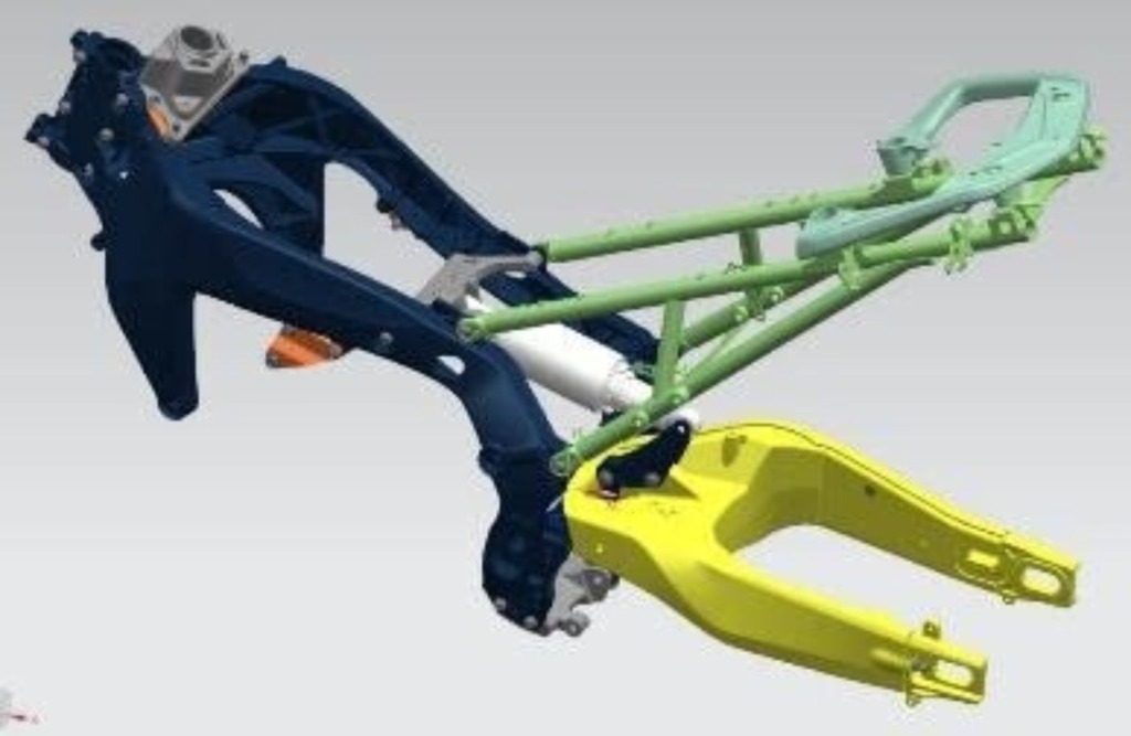 2)軽量CF アルミダイキャスト製の新フレームと専用リアフレームおよびリアアーム