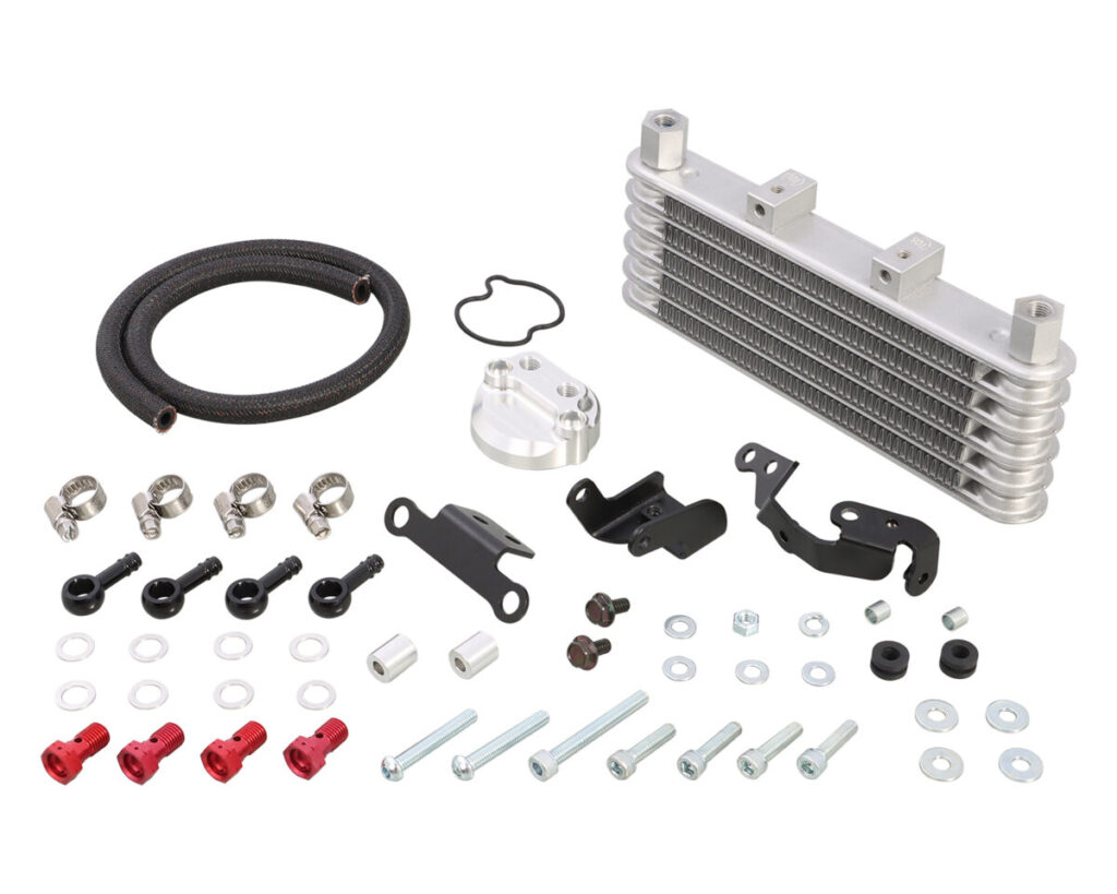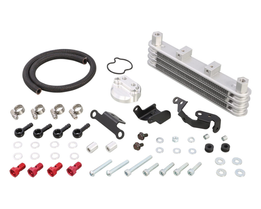 ボアアップをはじめとして、ハイチューンされたエンジンの必需品。高回転・高性能化したエンジンはその代償として膨大な熱を発し、ノーマルのままでは、オーバーヒート・焼き付き等、破損する場合がありますので、オイルクーラーの装着をお薦めします。