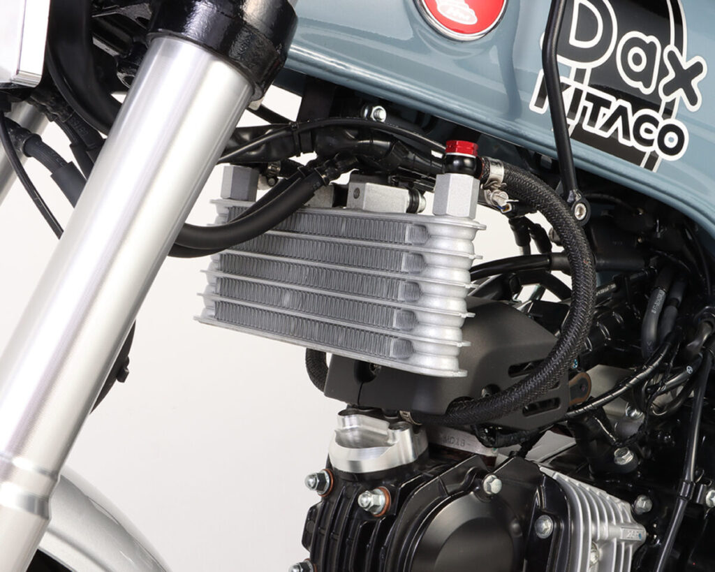 株式会社キタコは、ダックス125用スーパーオイルクーラーKIT、フロントフェンダーKITを発売した。スーパーオイルクーラーは、ボアアップなどハイチューンされたエンジンによる、オーバーヒートや焼き付き対策として必要なアイテムだ。3段と5段をラインナップ。価格は、3段が30,800円、5段が35,200円(いずれも税込)である。フロントフェンダーは、すっきりした見た目のショートタイプとなっており、ダックス125をスタイリッシュにドレスアップしてくれるアイテムだ。価格は16,500円(税込)。