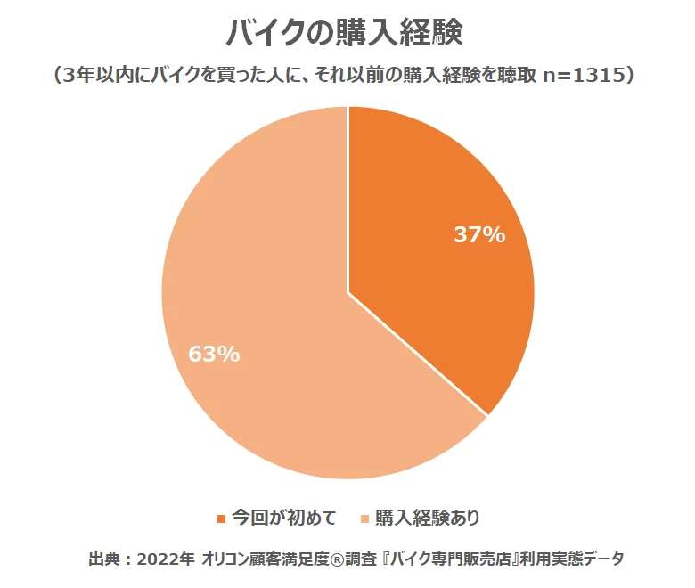 まず、バイクを購入した人に「バイクの購入経験」を聴取した結果、「今回が初めて」と答えた人の割合は37%となった。(右図)